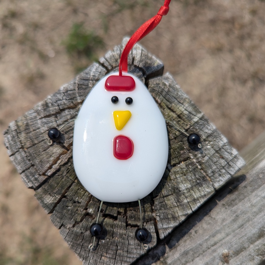 If you love chickens (like we do!) or know someone who does, this ornament will look great in a kitchen window or on a holiday tree.